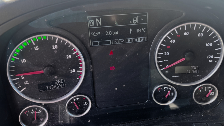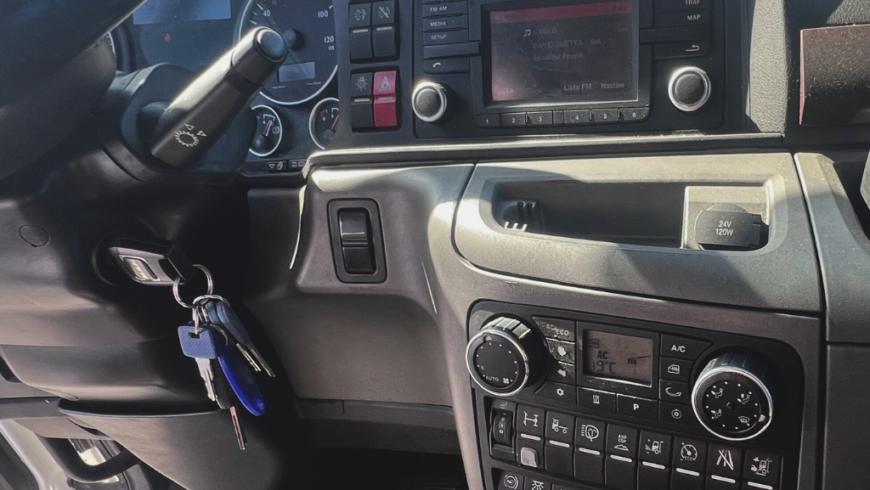 wyposażony w: ABS, klimatyzację, tachograf, tempomat, centralny zamek oraz przednie lusterko ogrzewane.