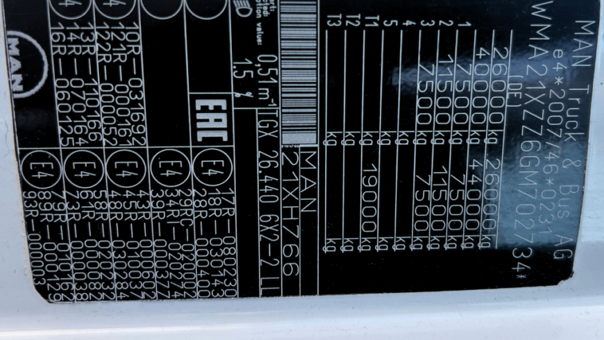 Dopuszczalna masa całkowita pojazdu 26000 kg
