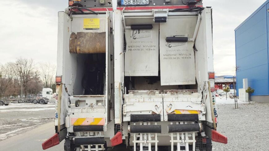 Podwozie od początku wyprodukowane pod śmieciarkę. Zabudowa dwukomorowa śmieciarki typu Faun marki Zoeller, dwie osobne komory dzielone 70/30. Obsługuje pojemniki od 120-1100L i posiada ramiona do pojemników metalowych 1100L