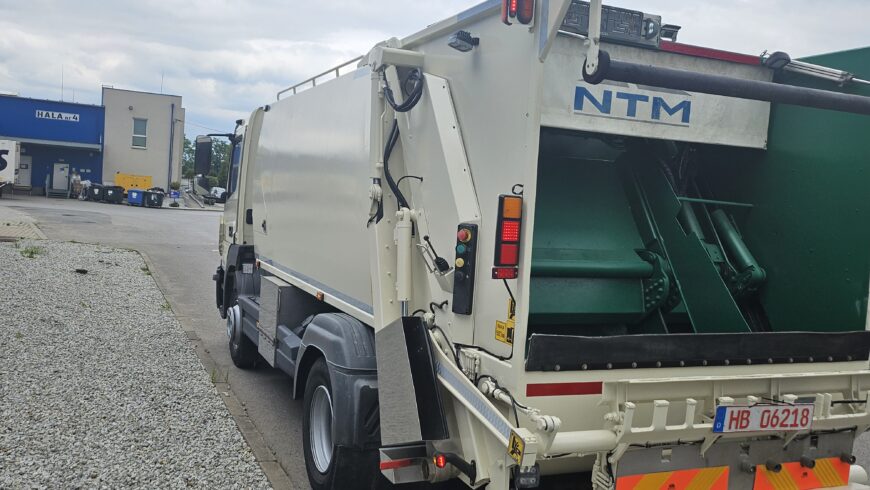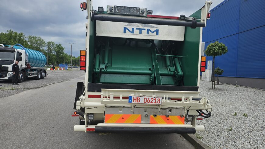Oferujemy na sprzedaż Śmieciarkę z zabudową NTM z tylnym urządzeniem załadowczym o pojemności komór na odpady 6,4m3+3,5 m3 z możliwością sterowania płytą wypychającą z kabiny kierowcy.