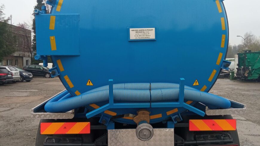 Pojazd zabudowany beczką asenizacyjną, zbiornik cylindryczny, wykonany z blachy stalowej grubości 6 mm. wzmocniony pierścieniami zewnętrznymi, zbiornik wyposażony w przegrody wewnętrzne, manowakuometr, lampa typu „kogut” w tylnej części zbiornika oraz lampa typu halogen do oświetlenia miejsca pracy, tłumik hałasu, wychwytywacz oleju smarującego.