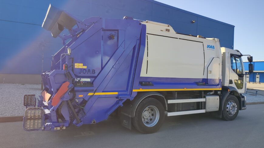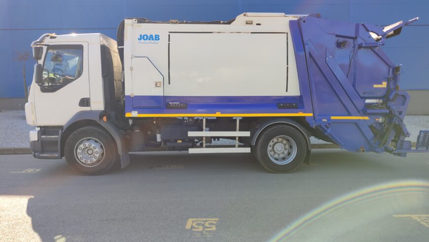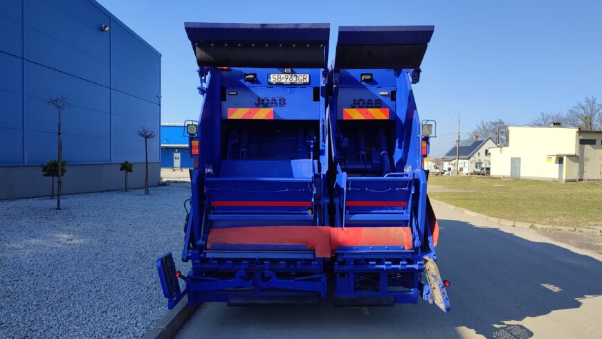 Oferujemy na sprzedaż Śmieciarkę z zabudową JOAB z tylnym urządzeniem załadowczym o pojemności komory na odpady 15m3 z możliwością sterowania płytą wypychającą z kabiny kierowcy. Jest również wyposażony w ramiona DIN do kontenerów 1100L, system załadowczy do opróżniania pojemników 120-1100L.