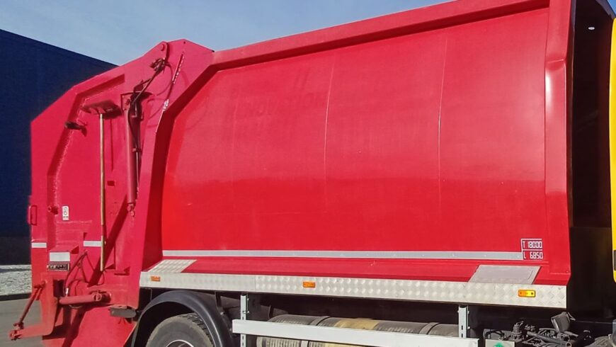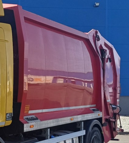 Sterowanie po 2 stronach zabudowy. Zabudowa śmieciarki pasująca do podwozia dwuosiowego.